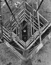 ![]() Robert Goddard em 1935 no local de testes dos seus foguetes em Roswell, Novo México. Foto de Charles Lindbergh. |