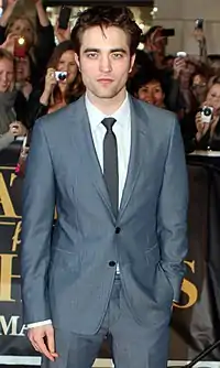 Robert Douglas Thomas Pattinson[3][4] (Londres, 13 de maio de 1986[5]) é um ator, modelo e músico britânico. Entre seus papéis mais notórios estão Cedrico Diggory em Harry Potter e o Cálice de Fogo (2005), Edward Cullen nos filmes da Saga Crepúsculo (2008–2012) e o super-herói Batman em The Batman (2022). Pattinson foi nomeado pela revista Time uma das 100 pessoas mais influentes do mundo em 2010, e foi destaque na lista Forbes Celebrity 100.[6][7][8]