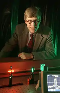 Robert Boyd com seu experimento de luz lenta de rubi.