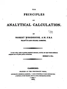 Sua mais antiga obra, Principles of Analytical Calculation, foi publicada em Cambridge em 1803.