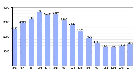 | Variação demográfica do município entre 1861 e 2011[3] |