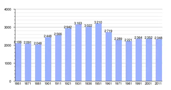| Variação demográfica do município entre 1861 e 2011[3] |