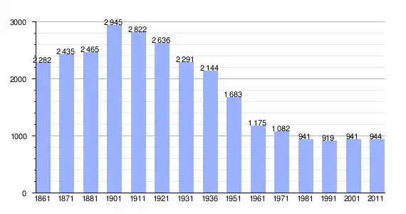 | Variação demográfica do município entre 1861 e 2011[3] |