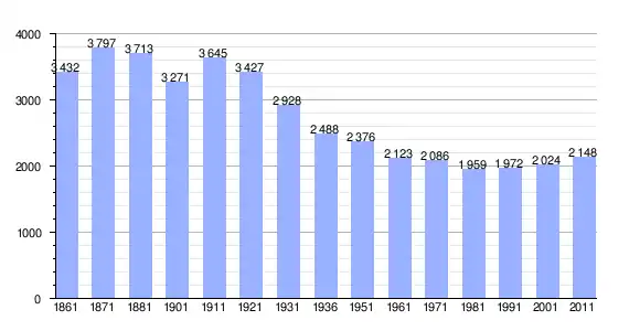 | Variação demográfica do município entre 1861 e 2011[3] |