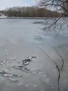 Águas congeladas do Rock River próximas a Oregon, Illinois.