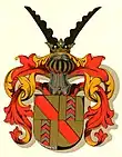 Brasão com as Armas de Rodolfo (Baden, à esquerda) e de sua mulher (Vienne, à direita).