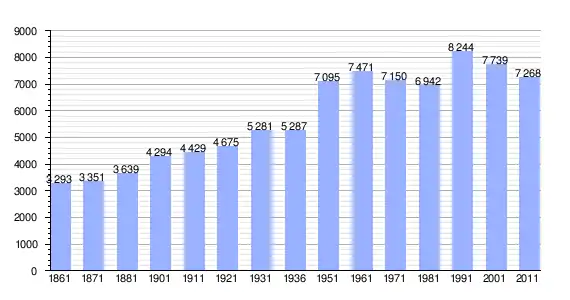 | Variação demográfica do município entre 1861 e 2011[3] |