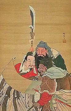 Enquanto isso, Sun Quan planejou tomar a província de Jing depois de se cansar das repetidas recusas de Liu Bei em entregar a província. Secretamente, fez as pazes e se aliou a Cao Cao contra Liu Bei. Enquanto Guan Yu, que protegia os territórios de Liu Bei na província de Jing, estava distante atacando Cao Ren na batalha de Fancheng, Sun Quan enviou seu general Lü Meng numa incursão secreta à província de Jing. Guan Yu foi incapaz de capturar Fancheng, então ele recuou. Mas foi, então, pego de surpresa pela invasão de Lü Meng, e constatou que havia perdido o controle da província de Jing. Com a moral do seu exército em queda e as deserções aumentando, Guan Yu e seus homens remanescentes recuaram para Maicheng, onde eles foram encurralados pelas forças de Sun Quan. Em desespero, Guan Yu tentou romper o cerco mas falhou e foi capturado em uma emboscada. Sun Quan o executou depois que Guan Yu se recusou a se render.