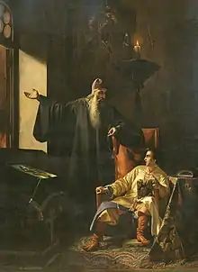Em 1865 o famoso historiador russo Nikolai Kostomarov publicou um romance intitulado O Filho (em russo: сын), uma narrativa trágica com descrições gráficas de execuções e massacres ocorridos durante a revolta de Stenka Razin, na Rússia do século XVII.[151] A obra de Kostomarov é marcada pelo seu pessimismo e pela sua descrição detalhista dos horrores da guerra, diferentemente das narrativas heroicas dos conflitos feitas por Pushkin.[152] No mesmo ano, Leo Tolstoy começou a publicação de Guerra e Paz (em russo: Война и мир),[152] considerada o primeiro grande romance histórico do realismo na Rússia. Guerra e Paz conta a história do país durante as guerras napoleônicas, principalmente durante a invasão napoleônica da Rússia, em 1812.[152] György Lukács afirma que a obra é um marco na história do romance histórico, considerando Tolstoy como o primeiro autor a propôr um modelo capaz de rivalizar com o de Walter Scott.[153][154] O romance histórico de Tolstoy é marcada pelo escopo amplo, narração baseada no cotidiano dos soldados e pelo patriotismo. Enquanto no modelo scottiano havia uma busca por certa neutralidade na descrição dos conflitos, em Tolstoy o papel dos soldados russos no combate contra a invasão estrangeira tem destaque.[155] Poucos anos depois, Guerra e Paz se tornou uma das obras mais lidas e impressas no Império Russo, e em grande medida, se tornou a versão mais bem aceita da Guerra de 1812.[156]