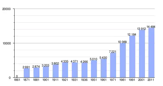 | Variação demográfica do município entre 1861 e 2011[3] |