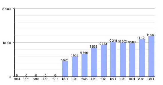 | Variação demográfica do município entre 1861 e 2011[3] |