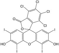 Rosa bengala (4,5,6,7-tetracloro-2',4',5',7'-tetraiodofluoresceína) é um corante. Seu sal de sódio é comumente usado em colírios para a detecção de células danificadas da conjuntiva e córnea e consequentemente identificar danos ao olho.[1] O corante também é usado na preparação de Foraminiferas para análises microscópicas, permitindo a distinção entre as formas que estavam vivos ou mortos no momento da coleta.