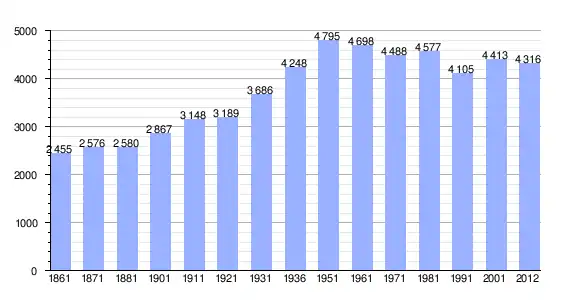 | Variação demográfica do município entre 1861 e 2011[3] |