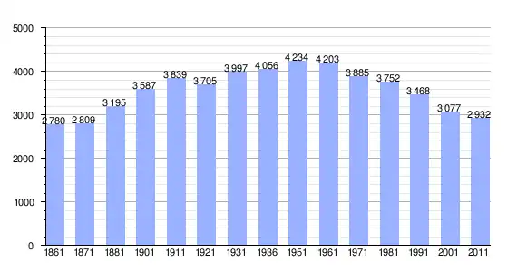 | Variação demográfica do município entre 1861 e 2011[3] |