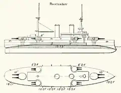| Armamento | 4 canhões de 254 mm 8 canhões de 152 mm 12 canhões de 47 mm 16 canhões de 37 mm 6 tubos de torpedo de 381 mm |