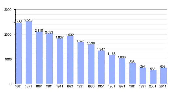| Variação demográfica do município entre 1861 e 2011[3] |