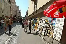 A rua é também popular entre vendedores de pinturas, souvenirs e artesanatos.