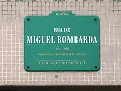 A atual "rua das galerias" denominava-se, antes de 1910, como "Rua do Príncipe", em honra ao Príncipe-regente, futuro rei João VI de Portugal. Com a implantação da República Portuguesa (1910), a rua foi rebatizada com o seu nome atual, em homenagem ao médico ilustre e precursor do regime republicano em Portugal, Miguel Bombarda.
