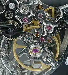 Um "rubi", como é vulgarmente chamado entre horologistas, é um rolamento onde um fuso de metal empurra um eixo revestido com gema. O buraco é geralmente em forma de toro e ligeiramente maior que o diâmetro do eixo. A gema é normalmente safira sintética. Rolamentos deste tipo são utilizados em instrumentos de precisão, mas seu uso mais frequente é em relógios mecânicos.