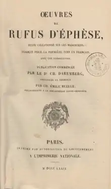 - "Rufus Ephesius" entry in Dictionary of Greek and Roman Biography and Mythology, page 669. Volume 3. (1869)