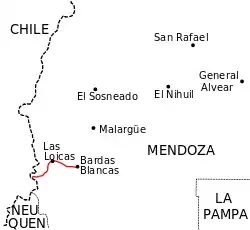 - Departamento Malargüe: Bardas Blancas (km 0) e Las Loicas (km 34).