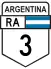 A Ruta Nacional 3 é uma rodovia redial argentina, que percore o país de norte a sul, desde a província de Buenos Aires até a província da Terra do Fogo. A rodovia inicia na Ruta Provincial 4, e percore 3.074 km até a ponte sobre o Rio Lapatai. O percurso encontra-se asfaltado até o Paso Integración Austral.