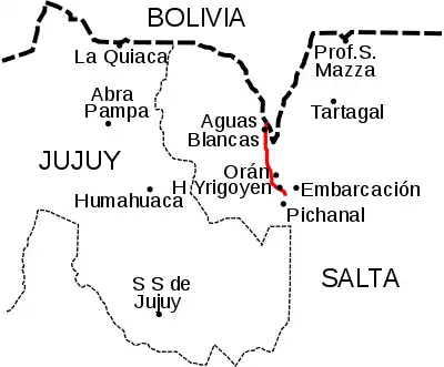 Límite internacional com a Bolivia (🌍) Pichanal (🌍) |