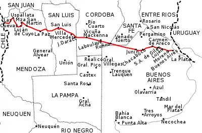 - km 965 a 999: De Santa Rosa a San Martín (seção aberta em 5 de outubro de 2007).