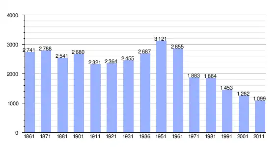 | Variação demográfica do município entre 1861 e 2011[3] |