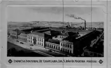 Durante muitos séculos, São João da Madeira passou despercebida no contexto nacional. Em meados do século XIX, contudo, opera-se uma mudança dramática na história local. A pequena aldeia de São João da Madeira acabaria por se tornar num dos maiores focos da Revolução Industrial em Portugal, transformando-se, num intervalo reduzido de anos, num dos maiores pólos industriais do país. A produção de chapéus é a primeira actividade industrial que se fixa. A primeira fábrica implanta-se em 1802 (J. Gomes de Pinho). António José de Oliveira Júnior, um ex-operário, foi um dos maiores impulsionadores da indústria na localidade, fundando, em 1892, a primeira fábrica de fabrico de chapéus de pêlo, e, em 1914, aquela que se tornaria um dos maiores símbolos de São João da Madeira - a Empresa Industrial de Chapelaria Lda. (na imagem). Totalmente mecanizada, quando começou a laborar era a maior fábrica da Península Ibérica.[5] Acompanhou a história da indústria de chapelaria em Portugal e hoje, o que resta do edifício aloja o Museu da Chapelaria. Oliveira Júnior viria a ser reconhecido na altura pelo próprio Governo, que lhe concedeu o diploma de Mérito Industrial e Agrícola,[6] e é figura grata na sua cidade, que ergueu um busto em sua honra e ofereceu o seu nome a uma das principais ruas da cidade. Em 1908, a inauguração da linha ferroviária - linha do Vouga - em São João da Madeira, pelo rei Manuel II de Portugal, contribuiu para potenciar ainda mais a onda de empreendedorismo. No primeiro quarto do século XX, com o crescente progresso e instalação de indústrias, a explosão demográfica e social foi de tal ordem que, num intervalo curto de tempo, a aldeia de São João da Madeira ultrapassou em população a sua sede de município, Oliveira de Azeméis, bem como a da histórica Vila da Feira. Num período de quatro anos, São João da Madeira adquiriu o estatuto de vila (1922) e a sua autonomia administrativa (1926), por desmembramento do município de Oliveira de Azeméis. No decreto nº 12.456, o Governo considerava São João da Madeira o "centro industrial mais importante do distrito de Aveiro", cujo desenvolvimento económico e social estava a ser "prejudicado, sufocado pela sua inferior categoria administrativa". A independência administrativa foi fruto de uma lenta estratificação histórica local, tendo desempenhado um papel relevante nesta conjuntura a imprensa local (O Regional), nascida de "um grupo de rapazes com sangue a estuar nas veias e ansiosos pelo progresso constante de São João da Madeira", grupo de notáveis sanjoanenses que constituíram o "Grupo Patriótico Sanjoanense", liderados pelo padre jesuíta e historiador português Serafim Leite.[7] Já com a sua autonomia administrativa, em plena Segunda Guerra Mundial, a indústria do feltro sobe em flecha em Portugal.[8] Nos anos 1940, a produção de pêlos e feltros é centralizada em S. João da Madeira, com a criação, em 1943, da Cortadoria Nacional do Pêlo, a única fábrica do país que trabalha os pêlos,[9] nacionalizada em 1945. Em 1946, dos 1775 operários da indústria de chapelaria em Portugal, 1212 trabalhavam em São João da Madeira.[5] A indústria de chapelaria era um importante ramo da actividade industrial em Portugal, e São João da Madeira era a sua sede.[10]