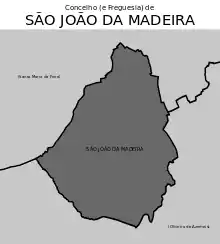 É sede do município de São João da Madeira, correspondendo à área, número de habitantes e densidade populacional da cidade, sendo constituída por apenas uma freguesia[3]. O município é limitado a norte e a oeste pelo município de Santa Maria da Feira, e a este e sul por Oliveira de Azeméis.