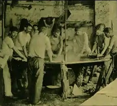 A actividade na região foi imortalizada pelo escritor João da Silva Correia, no seu romance "Unhas Negras".[11] Esta expressão pejorativa designava os operários da indústria dos chapéus que, em virtude do árduo trabalho em caldeiras de vapores designadas de fulas, ficavam com as unhas deterioradas e tingidas de preto. O termo acabaria por se generalizar, servindo para designar, durante muito tempo, todos os habitantes de São João da Madeira. A palavra Labor, no escudo da cidade, pretende significar precisamente que foi à custa do trabalho dos seus "Unhas Negras" que a cidade se desenvolveu e emancipou.[12] A actividade da chapelaria viria, no entanto, a decair nas décadas seguintes, com o desuso deste utensílio têxtil por parte da população. Paralelamente, a indústria do calçado foi crescendo, acabando por se tornar a principal actividade económica da cidade e tornando São João da Madeira conhecida como a "Capital do Calçado".