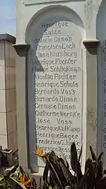 - Centro: José Henrique Buss, Bernardo Locks, Manoel Loch, José Voss, Bernardo Wessler, Bernardo Henrique Schlickmann, Guilherme Jeodocus, Söthe, Anna E. Kesterman, Germano Antonio Niehues, Maria A. Elichman, João Geraldo Brüning, Elisa Bühters, João Geraldo Schuls, Antoniete Barnbrügge, Cristóforo Lembeck, Maria Anna Öing, Henrique Röttgers, Anna Maria Hemsing, Joao Roden, Margarida Franzener, Bernardo Schlickman, Maria Cath Niehues, Guilherme Wernke, Catarina Hölting, Jose, rering, Anna Maria Abbenhaus, Germano Antonia Kestering, Elisa Monnemann, Bernardo Steen, Theresia Steen Locks, Germano Schlickman, Maria Cath Plitger