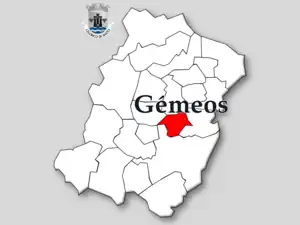 Os lugares principais da Freguesia de Gémeos eram Adoufe, Além do Rio, Além, Alminhas, Areeiro, Boavista, Boques, Bouça, Cancelo, Casas Novas, Corujeira, Eira, Fontainha, Fontão, Igreja, Lage, Lama, Lugar Novo, Loureiro, Moinho do Outeiro, Moinhos da Serra, Monte, Outeiro, Pinguela, Pouso, Quintas, Quintela, Refontoura, Ribeiro da Costinha, Roço, Montedo, Seixo, Sobreiro, São Silvestre, Tapada, Tribudo, Val-de-Maria, Veiga de Adoufe, Vilar e Vinha.