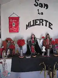 Existem semelhanças no cultivo aos exus de Umbanda, no que tange às oferendas, tais quais, uísque, aguardente, charutos, cigarros e comidas. Também há similitude nas imagens. A representação de São Morte sentado assemelha-se muito a Exu Tata Caveira.