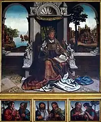 Na base do painel está uma predela dividida em três partes em que figuram São João Evangelista e Santo André, São Bartolomeu e São Tomé (?), e São Paulo e São Tiago.[1]