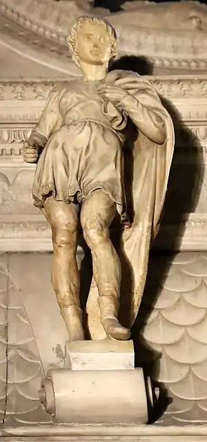 Michelangelo viveu e trabalhou em Bolonha, com o pseudônimo de Francesco Aldrovandi, do outono de 1492 ao final do ano de 1494,[1] realizando a Arca de São Domingo com os três seguintes mármores: