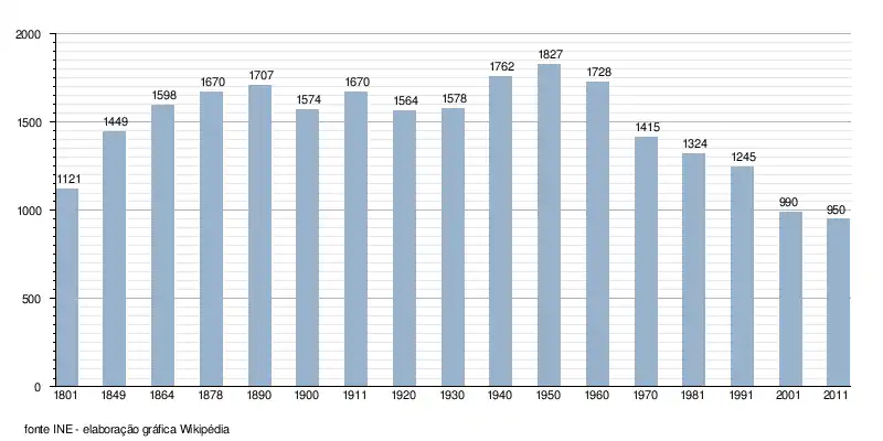 | População da freguesia de São Tomé do Castelo (1801–2011) | ||||||||||||||||