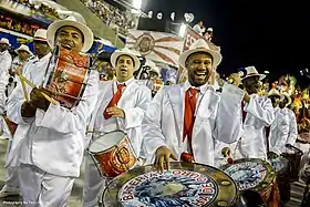 ![]() Bateria da Estácio de Sá no desfile de 2015, quando a agremiação venceu a Série A. A Estácio é a escola com mais títulos na segunda divisão do carnaval carioca. | |