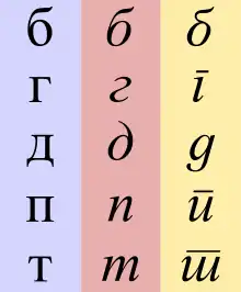 - <Љ>, <Њ> e <Џ> foram posteriormente adotadas para o uso no alfabeto macedônio.