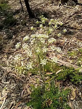 Segundo Teofrasto, a planta teria raízes escuras, casca negra, compridas com o tamanho de um cúbito.[3] Teria o caule oco e as folhas douradas, semelhante ao aipo, tendo sido comparada à Magydaris pastinacea, que cresce na Síria e nas encostas do Monte Parnaso, próximo de Delfos.[3][7]