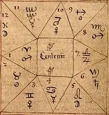 ) para o Sol e um crescente para a Lua.[3] O moderno símbolo do Sol, um círculo com um ponto (☉), apareceu pela primeira vez na Europa na Renascença.[3]