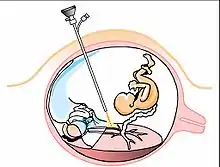 A fetoscopia (cirurgia fetal endoscópica) com coagulação a laser dos vasos placentários consiste na introdução de uma “cânula” (agulha mais grossa, de até 3mm) contendo um aparelho óptico (fetoscópio), através da parede abdominal e do útero (sem abrir a barriga da mãe), que permitirão visualizar diretamente os vasos que comunicam a circulação dos fetos. A interrupção da circulação nestes vasos será feita utilizando a coagulação por raio laser, através da passagem de uma fibra condutora pelo fetoscópio já introduzido.