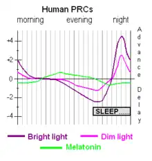 . PMID 18041479 - Burgess HJ, Revell VL, Eastman CI (2008). «A three pulse phase response curve to three milligrams of melatonin in humans». J. Physiol. (Lond.). 586 (2): 639–47. PMC 2375577