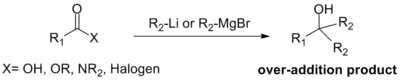A principal vantagem deste método sobre a adição reagentes organometálicos a compostos de acilo é que se evita o problema comum de adições posteriores indesejadas nas quais se forma um álcool: