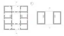 Na segunda faixa há um salão central, desprovido de janelas ou claraboias, que dá acesso à quatro alcovas (duas a cada lado) de maneira direta. Dois desses compartimentos possuem escadas que levam ao sobrado.