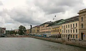 A Södra Hamngata constitui a margem sul do Grande Canal de Gotemburgo - o Stora Hamnkanalen.