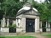 Túmulo de Solmssen no bloco Trinitatis a partir de 1930; por trás da figura de bronze a inscrição: