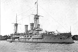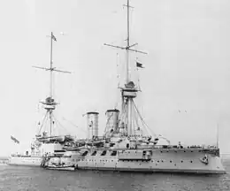 - A Marinha Imperial tipicamente organizava seus couraçados em esquadras de oito navios,[33] subdivididos em duas divisões de quatro embarcações, cada uma com sua própria capitânia. A capitânia da primeira divisão também servia como capitânia da esquadra, enquanto a capitânia da segunda divisão servia como a segunda capitânia de comando.[34][35]