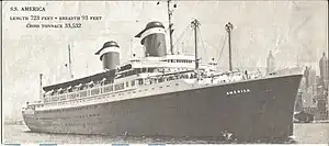 SS América foi um transatlântico e navio de cruzeiro norte-americano operado pela United States Lines e construído pelos estaleiros da Newport News Shipbuilding na Virgínia, Estados Unidos. Projetado pelo notável arquiteto naval americano William Francis Gibbs, a construção começou 22 de agosto de 1938 e foi lançado em 31 de agosto de 1939. O navio entrou em serviço comercial no ano seguinte.